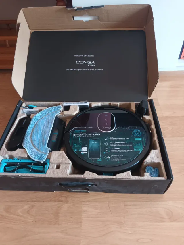 Detalles del productoRobot aspirador Cecotec Conga 1790 en su caja original. Le falla la bateria,se han de sustituir,por lo demad todo bien