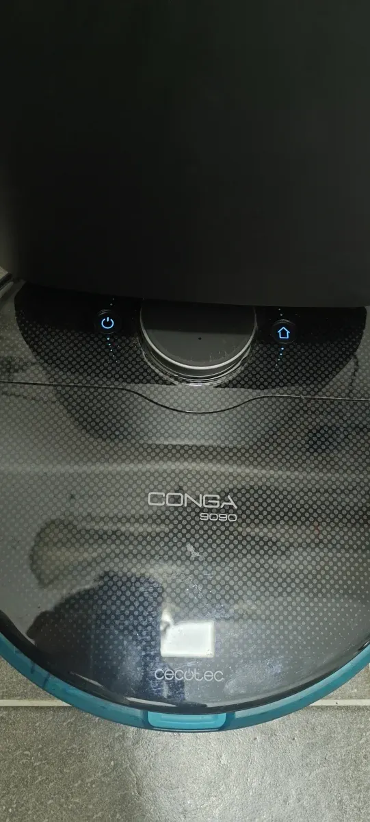 Detalles del productoRobot aspirador Cecotec Conga 9090 IA con diseño moderno y acabado en carbono.