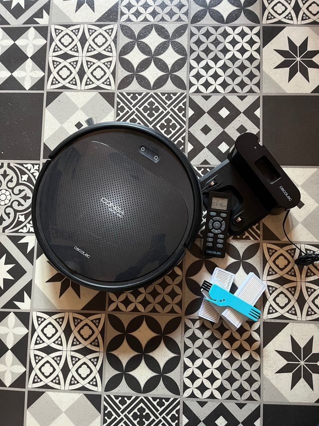Detalles del productoRobot aspirador Cecotec Conga 950 en color negro. Incluye su base de carga, mando a distancia y accesorios.