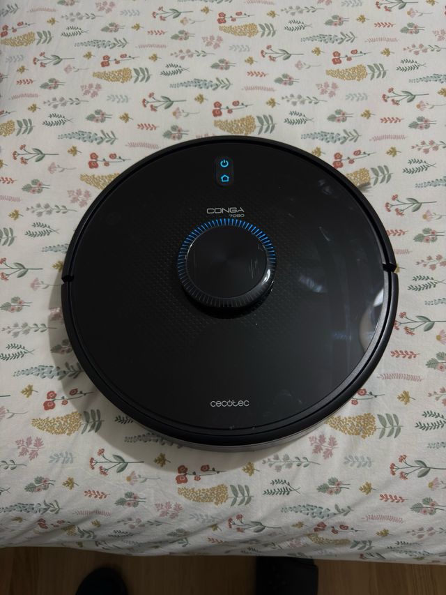 Detalles del productoRobot aspirador de la marca Cecotec, modelo Conga. Su diseño es redondo y de color negro.
