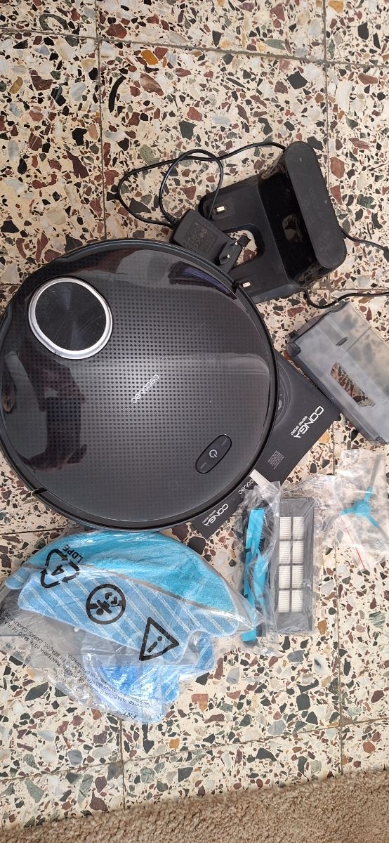 Detalles del productoRobot aspirador Conga 3090 laser. Con conexión wifi. Incluye base de carga, módulo de lavado con 6 almohadillas sin usar (mopa), y repuesto de cepillos, filtro y depósito de polvo.