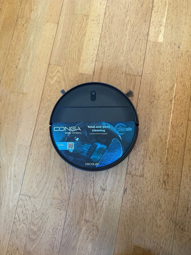 Robot aspirador Conga 999. - Diseño redondo. - Ruedas para desplazamiento. - Cepillos laterales.