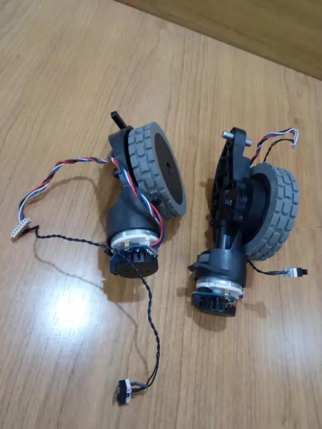Se venden dos ruedas completas para robot aspirador, cada una con su motor y cableado. - Incluye motores. - Cableado de conexión.