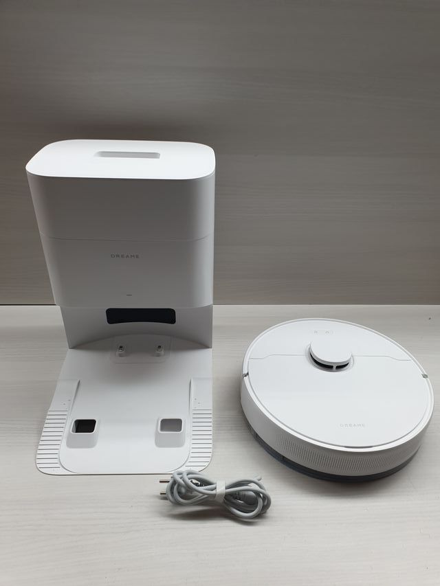 Detalles del productoRobot aspirador Dreame D10 Plus de segunda generación. Incluye su base de carga y cable de alimentación.
