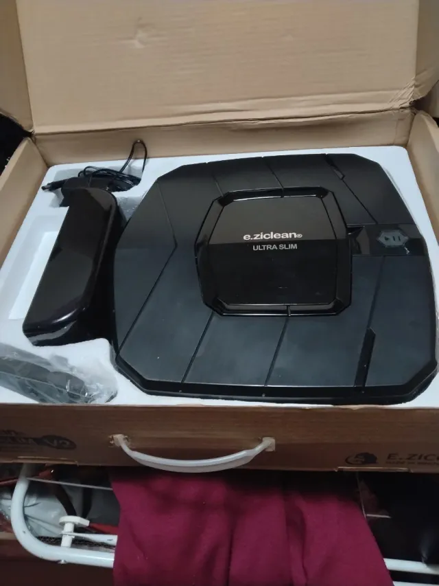 Robot aspirador de la marca E.Ziclean, modelo Ultra Slim. Su diseño es plano y moderno. - Color negro. - Base de carga incluida.