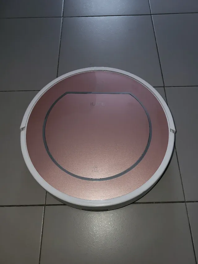 Robot aspirador de la marca ILIFE en color rosa. - Diseño redondo y compacto. - Acabado metálico en la parte superior.