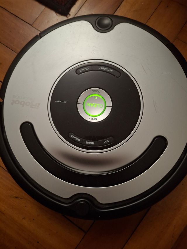 Robot aspirador iRobot Roomba, un ayudante para la limpieza del hogar. - Diseño redondo. - Botones de control en la parte superior.