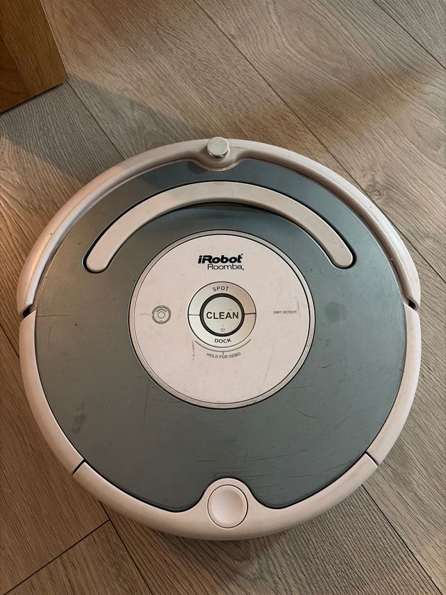 Detalles del productoRobot aspirador iRobot Roomba en color blanco y gris. Diseñado para la limpieza automática de suelos.