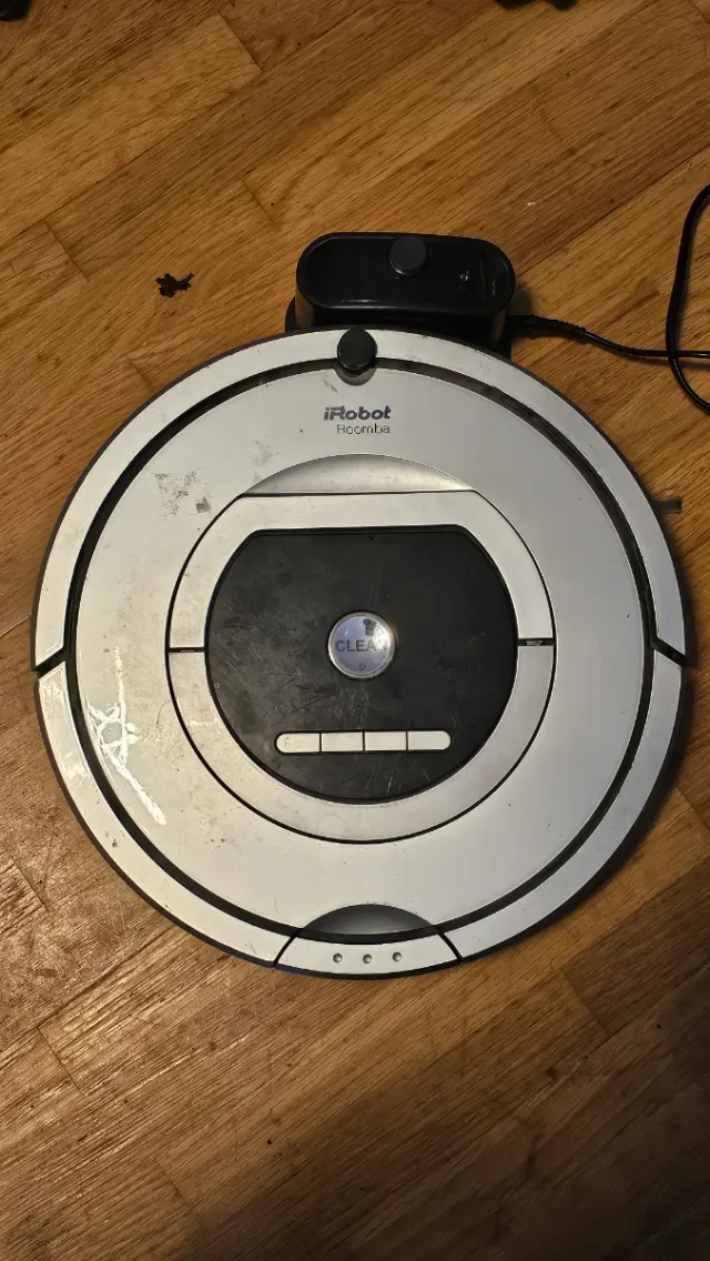 Detalles del productoRobot aspirador iRobot Roomba en color blanco y negro. Diseñado para la limpieza automática de suelos.