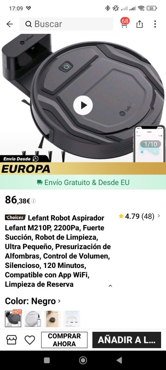 Detalles del productoRobot aspirador Lefant M210P, sin abrir y en su embalaje original.
