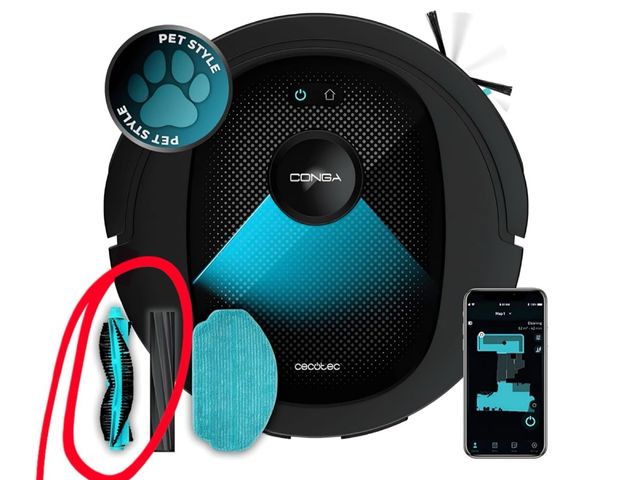 Detalles del productoRobot aspirador Cecotec Conga con tecnología Pet Style. Es producto nuevo con Tara. En este caso le falta el rodillo, pero el aspirador es a estrenar tal como viene de fabrica