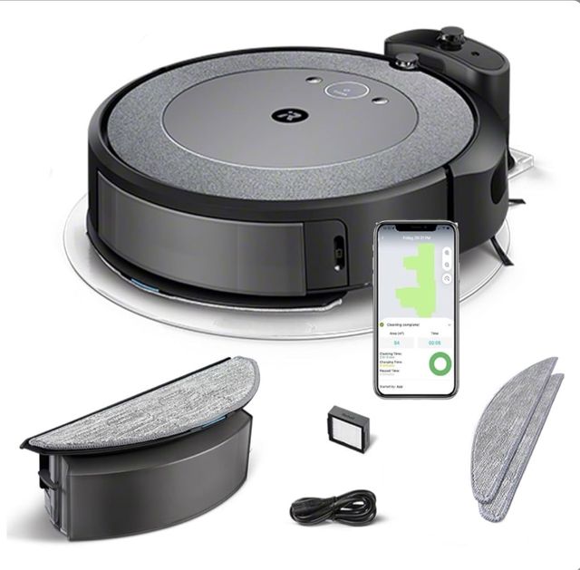 Detalles del productoiRobot Roomba Combo i5 Robot Aspirador y friegasuelos 2en1 con depósito Mixto - Cepillos Goma y sensores de Suciedad - Ideal Mascotas -Limpia por habitación -Recarga y reanuda -Control por Voz y App. Función especial Anticaídas, Aspiración y fregado simultáneos, Húmedo/Seco, Mapeo inteligente