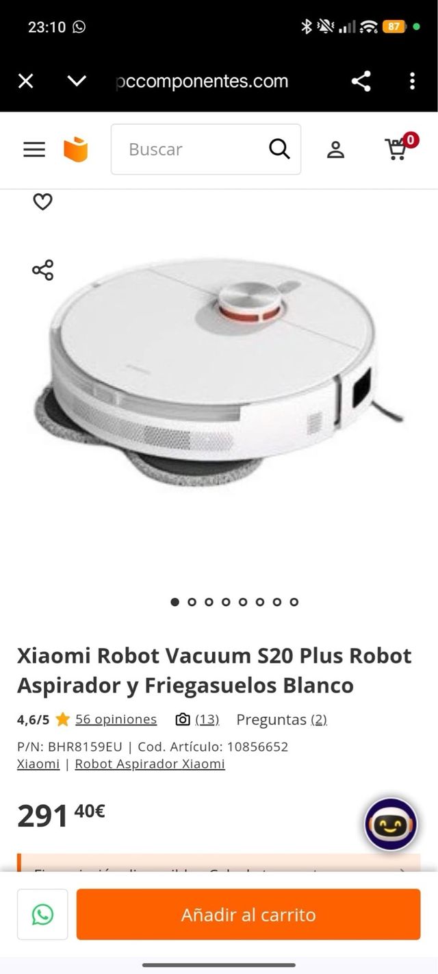 Detalles del productoRobot aspirador y friegasuelos Xiaomi Robot Vacuum S20 Plus en color blanco.