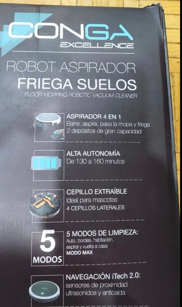 Detalles del productoSe vende robot aspirador inteligente como el rumba pero de la marca conga, además viene con función friega suelos aparte de aspirar también te friega el suelo. Prácticamente a estrenar fue regalo para señora mayor pero no le gustó ya que es tradicional