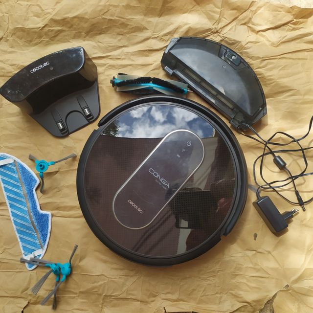 Detalles del productoAspiradora robot Conga 1390 en buen estado, aunque no funciona. Incluye dos cepillos laterales, dos mopas, base de carga, cepillo principal y depósito de polvo. Perfecta para reparar o usar piezas.
