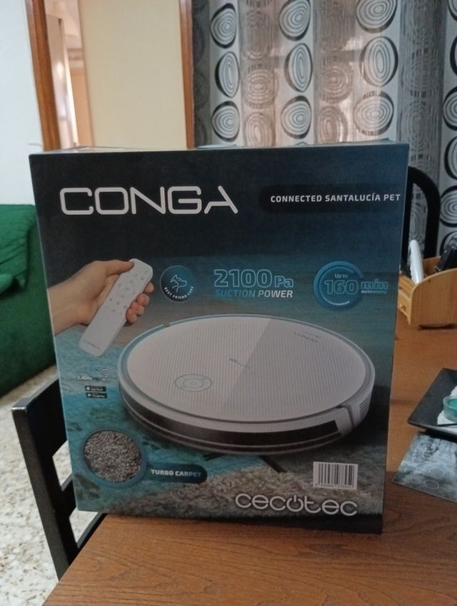 Detalles del productoAspiradora robot Conga Cecotec Connected Santa Lucía Pet, prácticamente nueva.