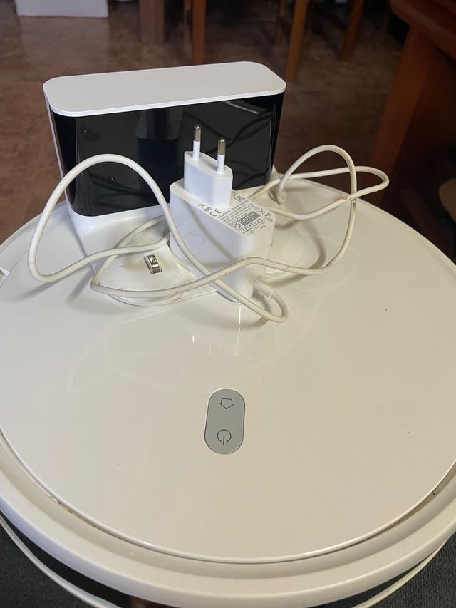Robot aspiradora, tambien friega Xiaomi, en buen estado. - Incluye base de carga y cable. - Dispone de dos botones en la parte superior.