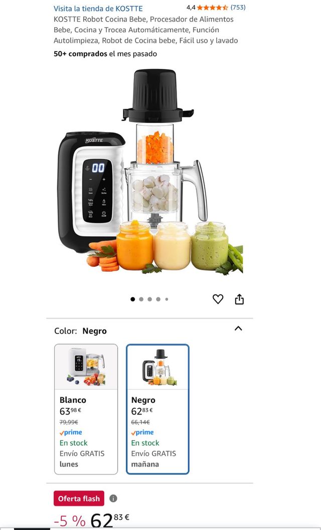 Detalles del productoRobot de cocina KOSTTE para bebé, prácticamente nuevo. Es de color negro y está en perfecto estado.