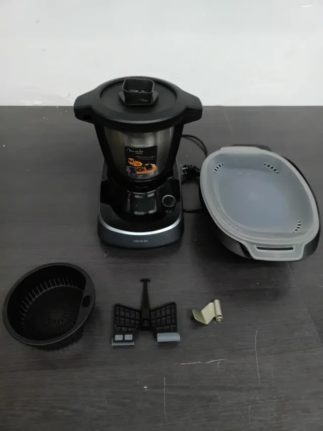 Detalles del productoCecotec Robot de Cocina Multifunción Mambo Touch. 1600 W, 37 Funciones, Pantalla Táctil TFT 5" con Recetario Integrado, 3,3 Litros de Capacidad, APP, Báscula y Jarra de Acero Inoxidable.