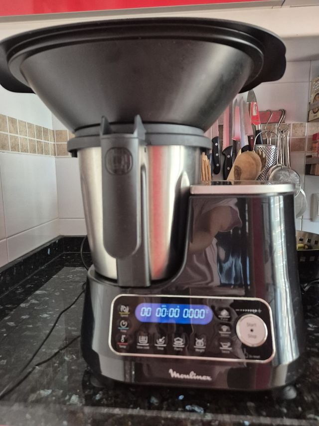 Detalles del productoRobot de cocina Moulinex multinacional,1400w, 3 ,6 litros, programas auto, trmperatura de 30°a 120°, 12 velocidades, 32 funciones, bascula,vaporara ,negro.