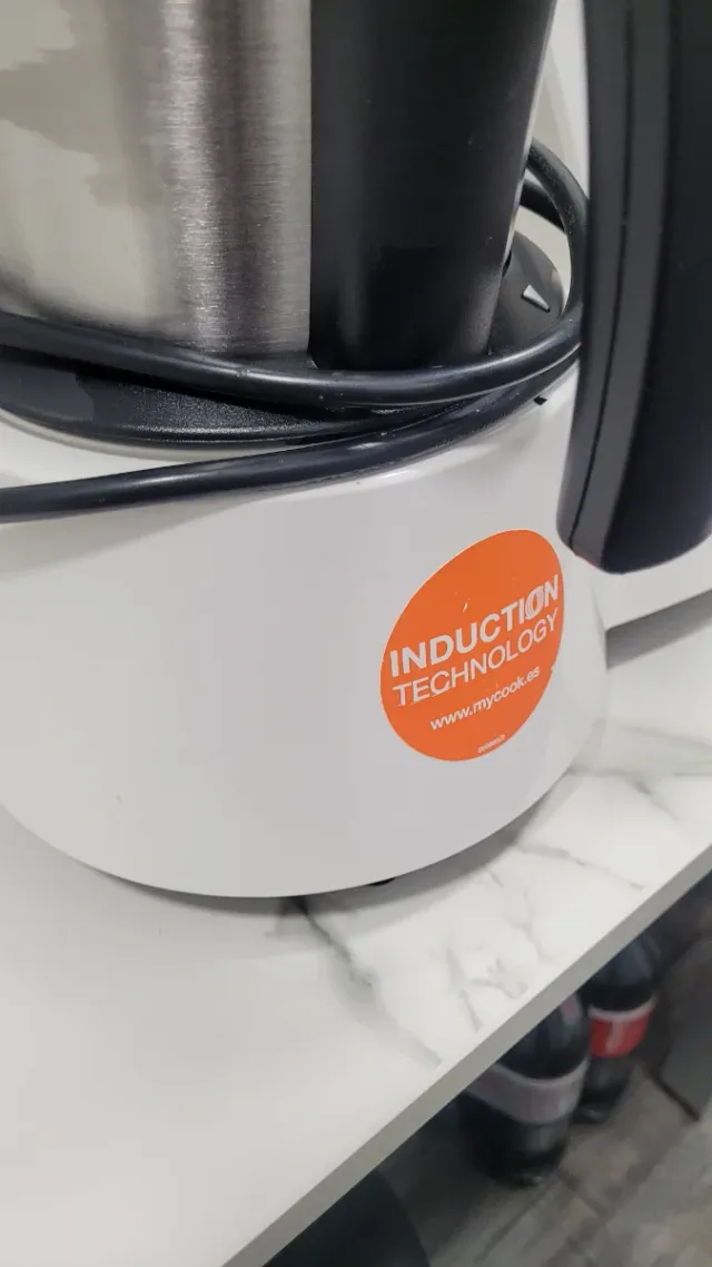 Robot de cocina Mycook en color blanco, con tecnología de inducción. - Incluye todos los accesorios. - Diseño moderno y funcional.