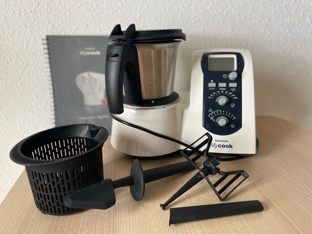 Detalles del productoRobot de cocina Taurus MyCook en color blanco y negro. Incluye varios accesorios para facilitar tus preparaciones.