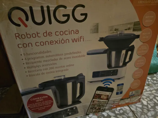 Detalles del productoRobot de cocina Quigg con conexión WiFi, sin estrenar. Incluye 9 funcionalidades y 4 programas automáticos.