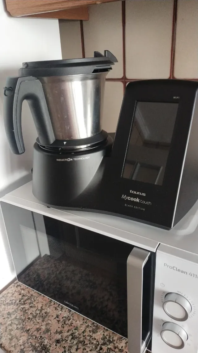 Detalles del productoRobot de cocina Taurus Mycook Touch en acabado Black Edition. Cuenta con conexión WiFi para acceder a recetas.