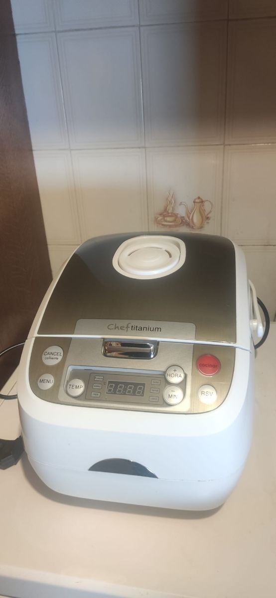 vendo este robot de cocina marca chef Titanium, esta sin usar tiene aún los plásticos y viene con recetario
