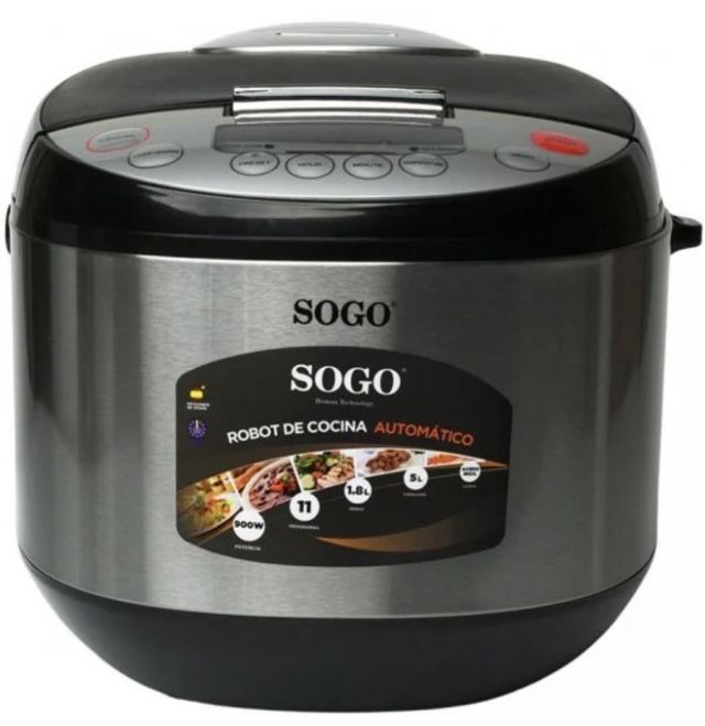 Detalles del productoSogo SS-10785 Olla Robot de cocina automático con acabado en acero inoxidable. Cuenta con 11 opciones de cocinado como cocción lenta, freír, guisado, horneado o vapor para tus recetas de arroz, gachas, pastas, sopas, yogures etc. Además, ahorra energía gracias a la programación de cocción óptima en la mayoría de los platos.