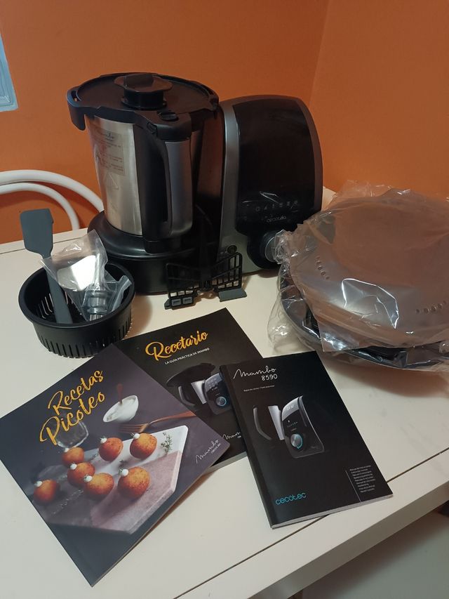 Detalles del productoVendo Cecotec Mambo 5'5 litros prácticamente a estrenar. Creo que la he usado 2 veces para probarla. Con sus accesorios y todo como nuevo, de hecho el varoma y la mezcladora ni las he sacado de su envoltorio.