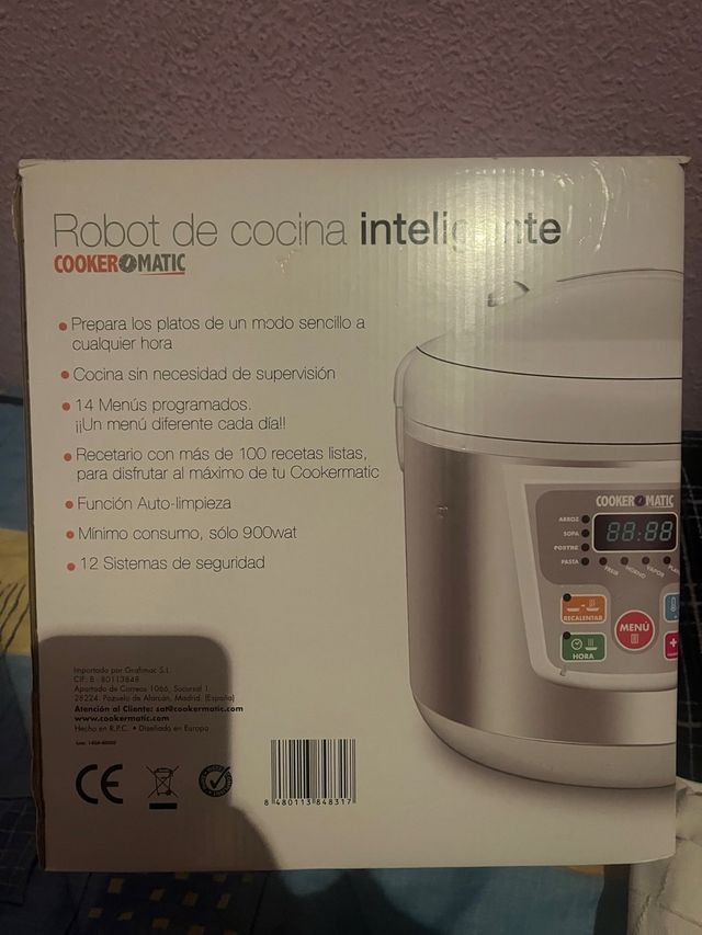 Detalles del productoRobot de cocina Cookermatic con múltiples funciones. Ideal para preparar platos de forma sencilla y sin supervisión.