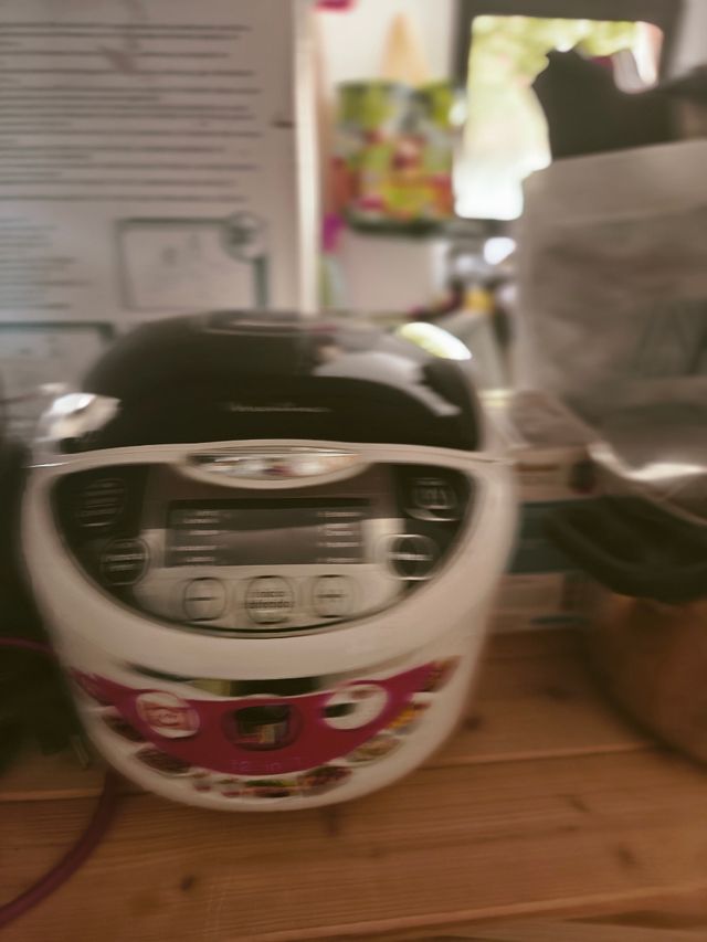 Detalles del productoRobot de cocina Moulinex en color blanco y negro. Cuenta con un panel de control digital y varios programas.