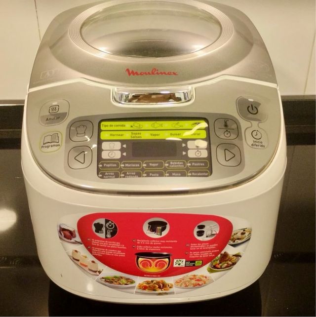 Detalles del productoRobot de cocina para horneados, al vapor, estofados, fritos y un largo etc, con inicio programable y funcion mantener caliente por 24H. Bol esferico que ofrece una coccion optima y homogenea. De regalo acessorio cesta de vapor y vaso medidor.Incluye libro de recetas original. Si deseas mas info por privado. Usado solo 2 veces. Medidas del producto