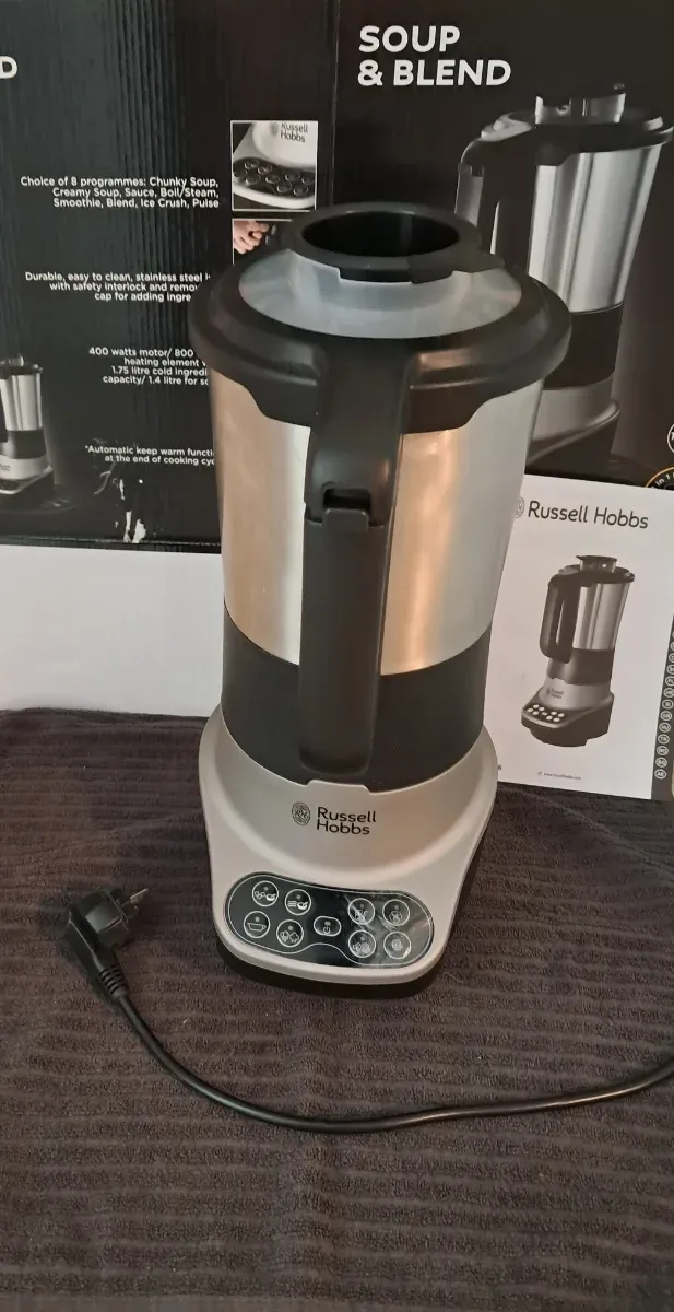 Detalles del productoRobot de cocina Russell Hobbs Soup & Blend, ideal para preparar sopas, salsas y batidos.