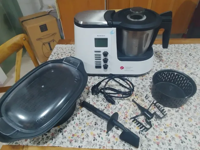 - Incluye todos los accesorios para diferentes preparaciones, batidora, picadora, vaporera, balanza, amasadora ( foto 1)