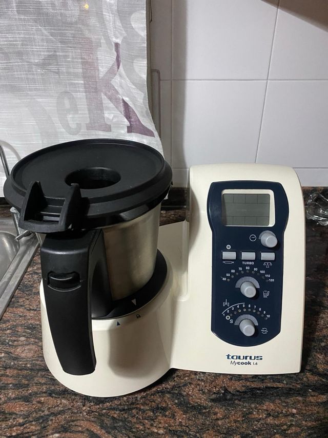 Detalles del productoRobot de cocina Taurus Mycook 1.6 en color blanco y azul.
