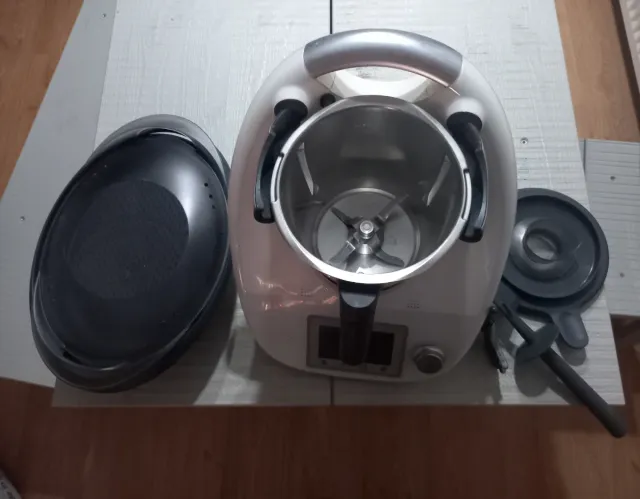 Robot de cocina Thermomix en color blanco. Incluye accesorios. - Jarra de acero inoxidable. - Tapa con cierre de seguridad. - Cuchillas. - Varoma.
