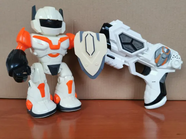 - Brazos y piernas articulados.Tiene sonidos y luces y también anda y gira, la pistola tiene luces y sonidos