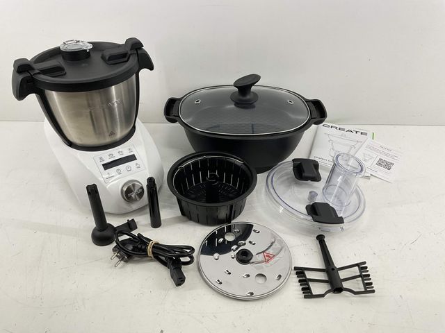 Detalles del productoEl precio mostrado es el de venta en nuestra tienda. El precio de este producto en nuestra página web puede ser diferente. Este artículo está disponible en nuestra tienda de Pamplona. robot multifuncion create chefbot compact CC086_E531609_0 es un objeto que se ofrece en estado correcto. Todos nuestros productos cuentan con garantía de 3 años y un plazo de devolución de 14 días. Disco para cortar verduras: Si | Jarra mezcladora: Si | Rallador: Si | Picadora carne: Si | Tapa de serie: Si | Espatula: No | Informacion adicional: Tubo de licuadora roto y pegado, ver última foto | Modelo: Chefbot compact | Marca: Create | Tapa: S