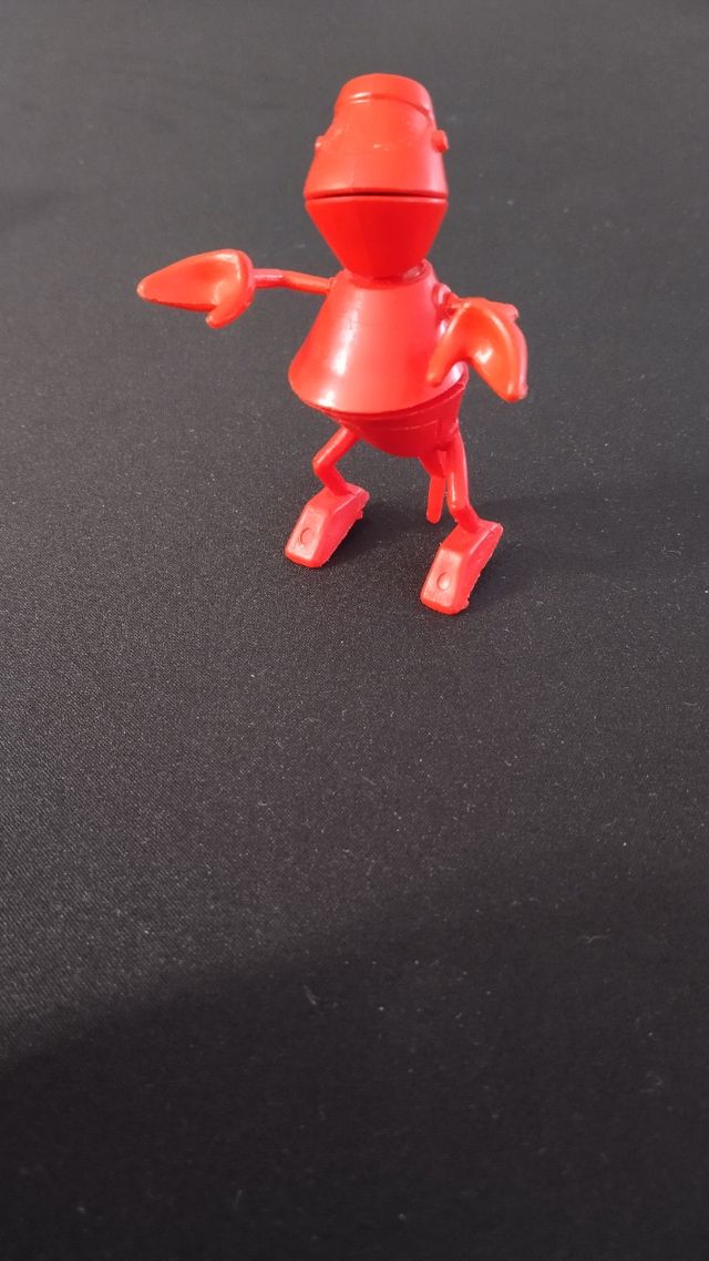 Articulados brazos y cabeza. Falta pegatina de los ojos y pequeña antena de la cabeza.