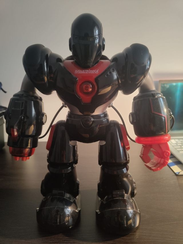 Robot por control remoto, sección juguetrónica El Corte Inglés. Habla, baila, anda y dispara dardos. Se ha usado muy poco.