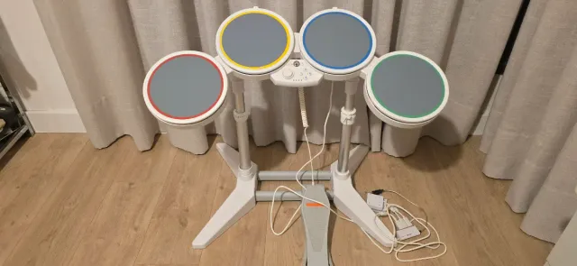 Detalles del productoCompleto set de Rock Band para Wii que incluye la batería, 1 guitarra, micro (a estrenar) y el juego.