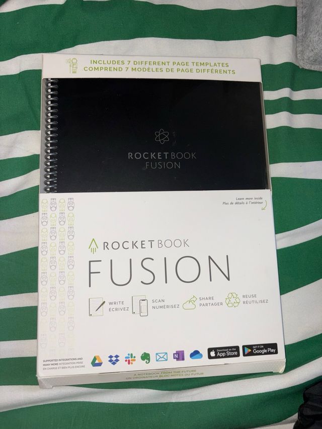 Detalles del productoCuaderno reutilizable Rocketbook Fusion con tapa negra.