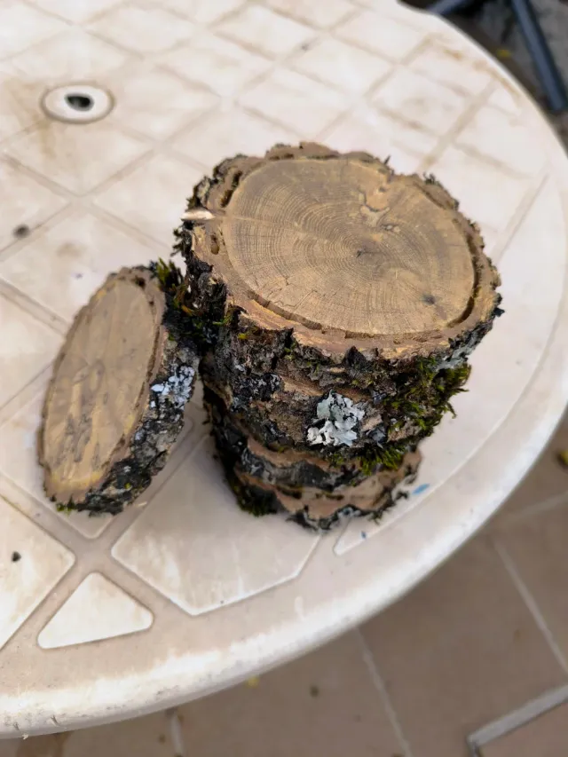 Detalles del productoSet de 8 rodajas de madera natural, perfectas para manualidades o decoración. Si necesitas menos escribeme. 11 cm de diámetro x 2cm de grosor, aproximadamente