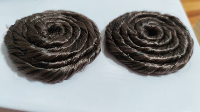 Detalles del productoDos rodetes de fallera en tono castaño, usados un par de veces el año pasado, los vendo porque le he cambiado el tamaño de moños