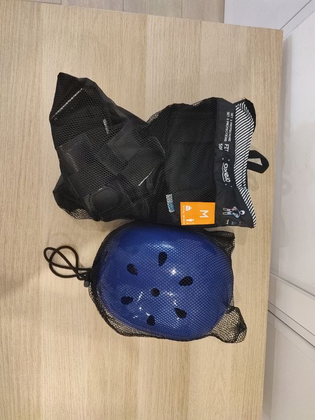 Detalles del productoSet de protecciones Oxelo para patinaje o solimar talla M. Color negro. Con bolsa de transporte. Sin estrenar. Valen 20 euros en Decathlon.