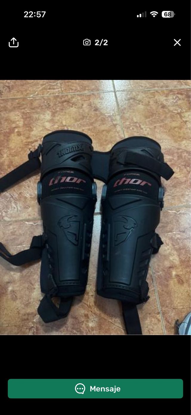 Par de rodilleras Thor en talla L. - Color negro. - Cierre con correas ajustables.