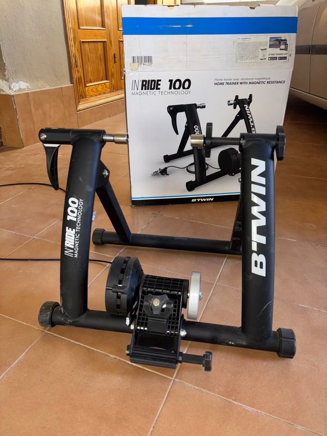 Detalles del productoVendo rodillo B’TWIN In Ride 100, ideal para entrenar en casa cuando hace frío, llueve o te da pereza salir a la carretera como a cualquier ser humano decente.