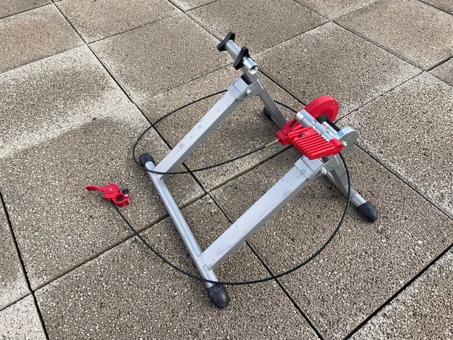 Rodillo de entrenamiento para ciclismo. Plegable. La resistencia se ajusta con un mando al manillar